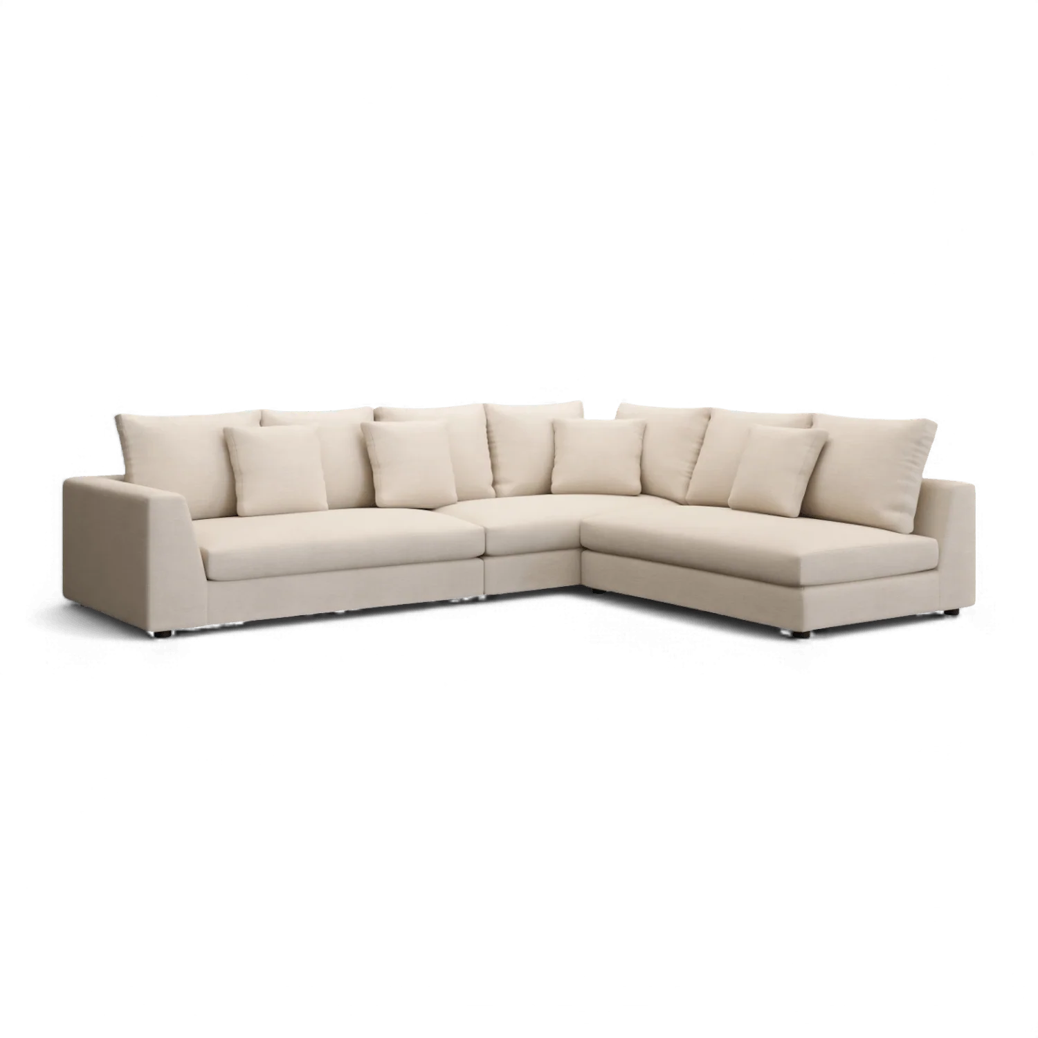 The Gianni Sectional Sofa Cream combines contemporary design with ultimate comfort, making it the perfect centerpiece for any living space. Upholstered in a luxurious, cream-colored fabric, this L-shaped sectional invites relaxation with its soft, inviting texture. Its squared armrest and clean-lined back lend a modern, minimalist aesthetic, seamlessly blending style with functionality.