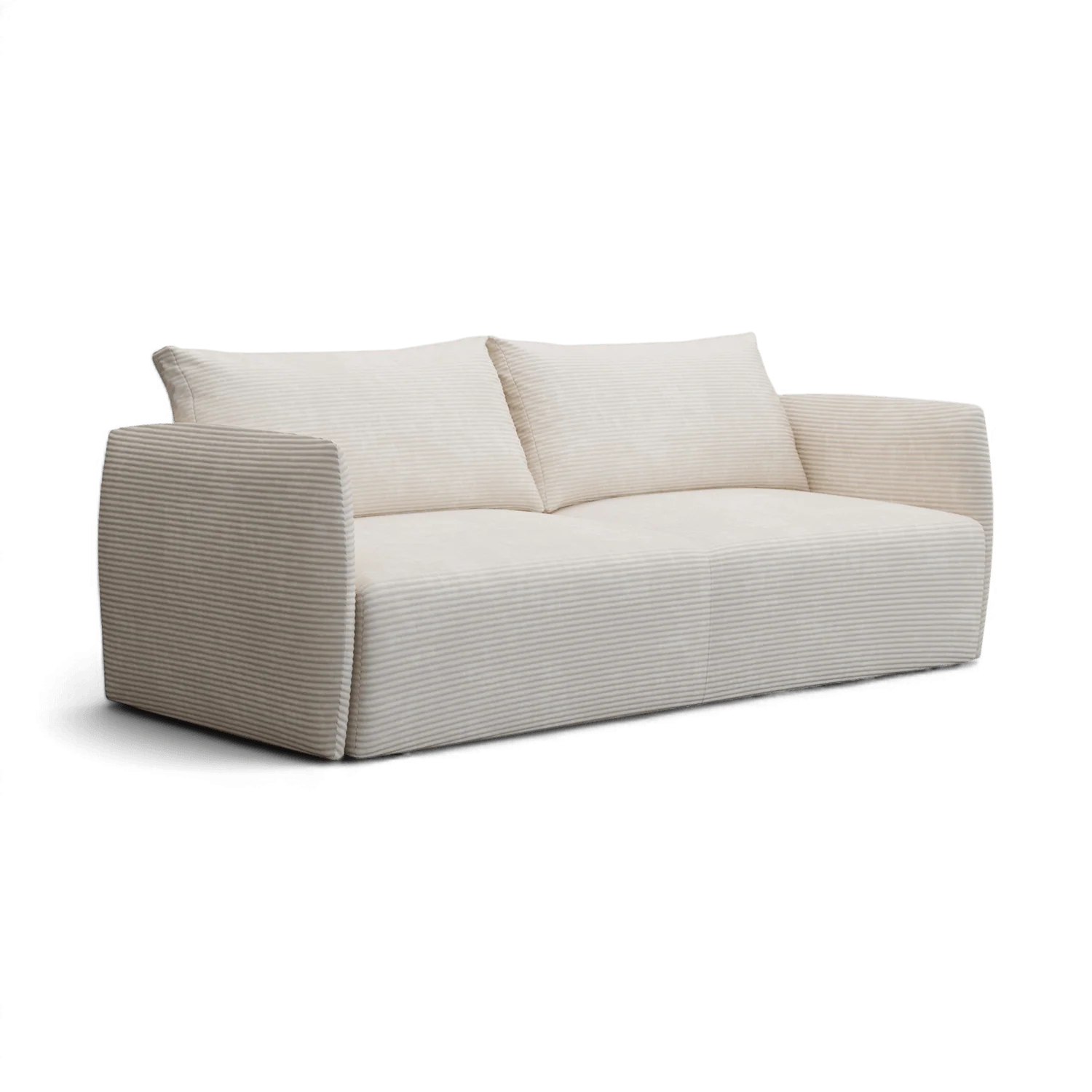 Designed for versatility, the sofa easily converts into a full-size bed, providing a seamless solution for overnight guests. Two plush, removable back pillows enhance the sofa's cozy appeal, while maintaining a clean, tailored look. Whether you're lounging, entertaining, or accommodating visitors, the Nilo Sofa Bed Ivory Velvet Corduroy delivers both sophistication and convenience.