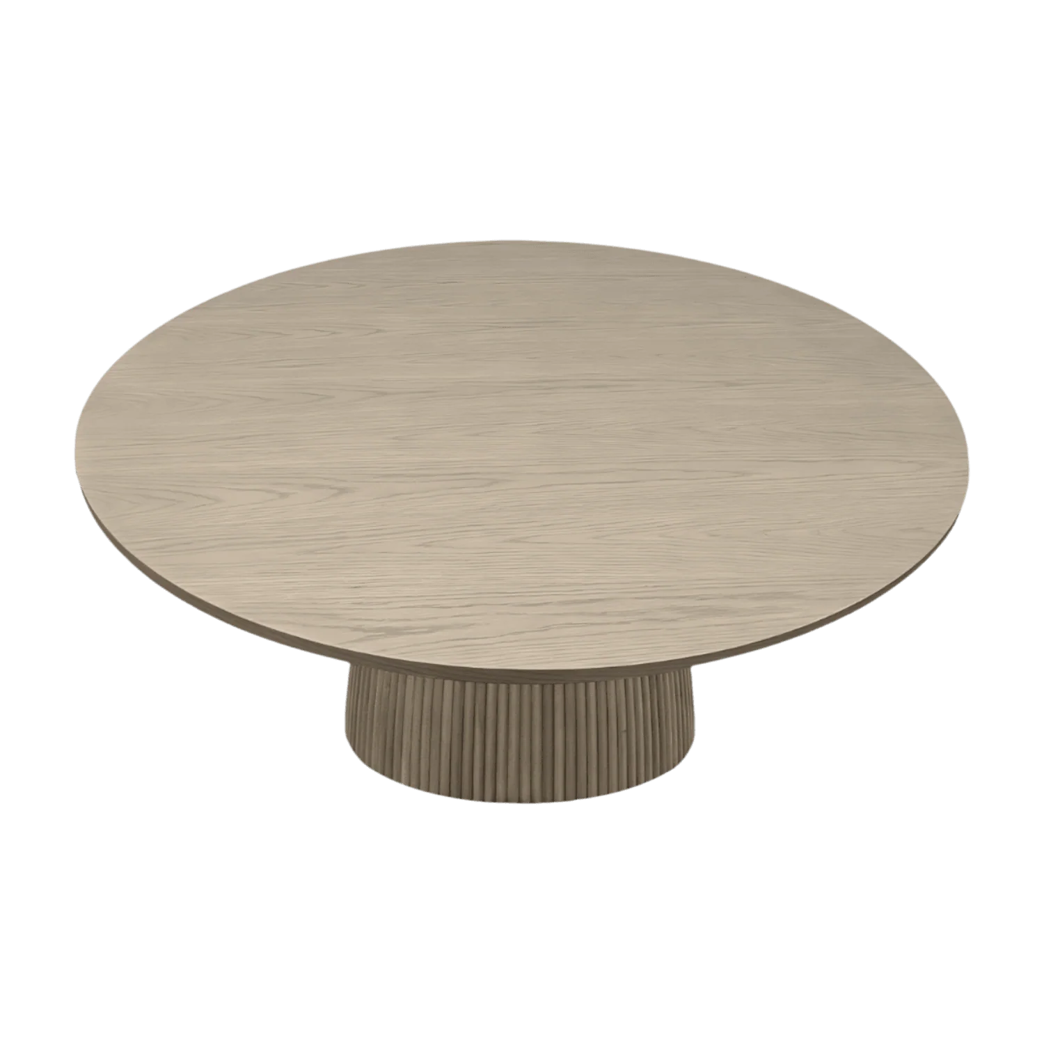 The standout feature of this table is its base design, showcasing an eye-catching arrangement of vertical wood slats that add depth and texture to the overall aesthetic. The combination of the clean, round tabletop and the artistic base creates a harmonious blend of modern and classic design elements, making the Oxford Dining Table Greige Oak a stylish and functional choice for your home.