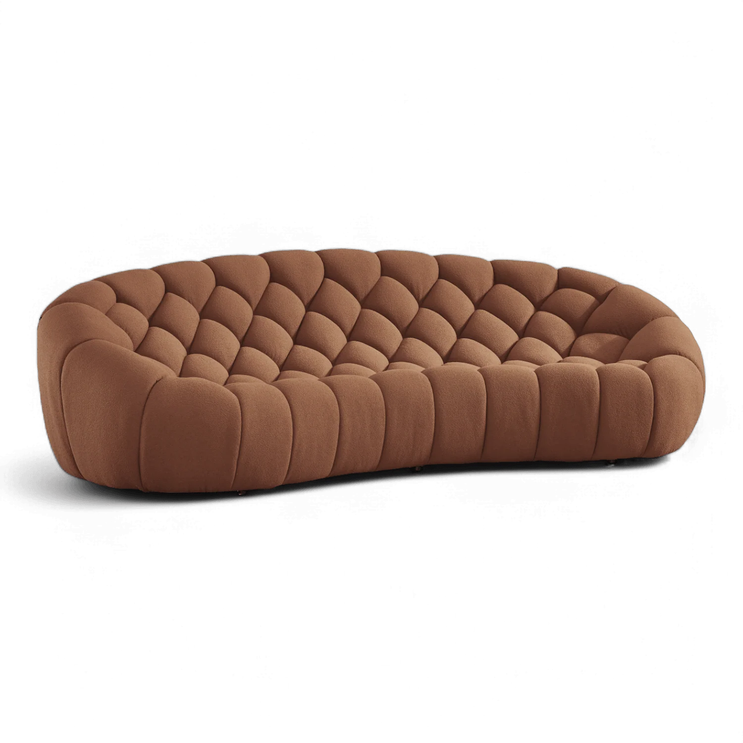 Bring a pop of color and style to your space with the Warby Three-Seater Sofa in Terracotta. This piece marries contemporary design with timeless comfort, featuring a beautifully tufted, curved form wrapped in rich terracotta fabric. Ideal for adding a touch of luxury to your living room, the Warby sofa’s distinctive shape and lush texture make it the centerpiece of any decor, whether eclectic or classic.