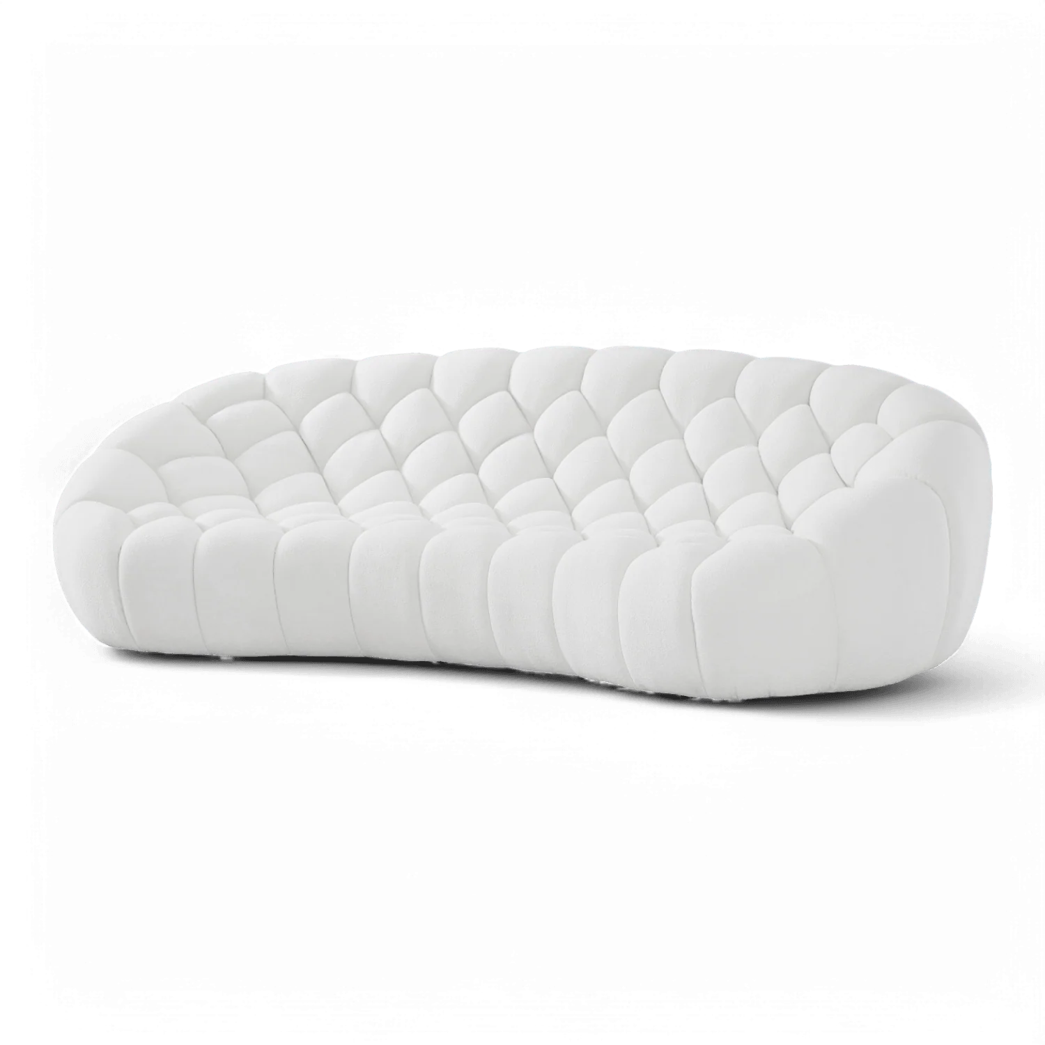 Elevate your living space with the Warby Three-Seater Sofa in White Bouclé. This sofa’s unique, curved silhouette and luxurious tufted texture create an inviting atmosphere. The soft, white bouclé fabric enhances the sofa’s cozy feel while maintaining an air of sophistication, making it perfect for both minimalistic and modern interiors. With a plush, cloud-like comfort and a design that makes a statement, the Warby sofa is an irresistible addition to any home.